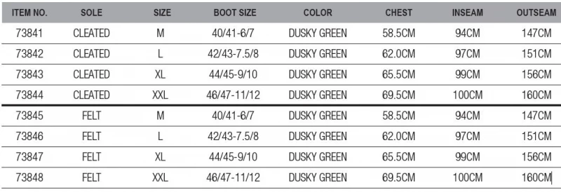 Die atmungsaktiven Wathosen der Scierra Helmsdale-Serie werden mit Schwerpunkt auf Bewegung, Komfort und Haltbarkeit entwickelt. Jetzt in klassischen Farben und einer großen Auswahl an Größen und Modellen erhältlich. Wasserdichtes, 3-lagiges Material mit einer Wassersäule von 20.000mm Atmungsaktivität von 4.000 mvp Elastische Hosenträger Komfortables Schnallensystem Elastische Brustverstellung Ausklappbare Taschen im Hauptmaterial Streifen für die Befestigung von Werkzeugen Wasserabweisend, Vordertasche mit Reißverschluss Verstärkte Handwärmetaschen mit Fleece Watgurt aus Neopren sorgt für Komfort und Rückenstabilisierung Vertikale Schneidetechnologie sorgt für aktive Bewegungsunterstützung Gedruckte 3D-Logos aus Silikon Gummistiefel mit 4,5 mm Neopren Profilsohle Netz-Tragetasche ist im Lieferumfang enthalten Mit Gummisohle oder Filzsohle erhältlich!