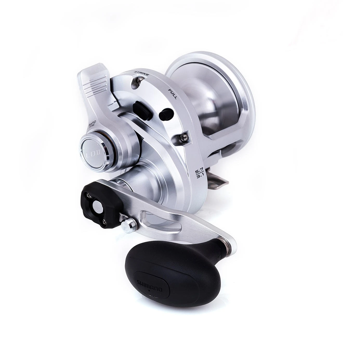 Die 19SPEEDMASTER LD erweitert das Shimano Sortiment an Multirollen mit Lever Drag. Die Speedmaster LDII ist eine sehr vielseitige Rolle. Aufgrund der kompakten Größe kann sie für viele verschiedene Rutentypen und Angeltechniken wie Trolling, Stand-Up Fishing, Grundfischen und sogar zum Werfen von Kunstködern verwendet werden. Das Zwei-Gang-Getriebe dieser Multirolle ist sehr hilfreich und vielseitig einsetzbar. Wenn der Köder schnell eingeholt werden muss, ist die Übersetzung von 5,7:1 mit einem Schnureinzug von 107 cm pro Kurbelumdrehung bestens geeignet. Im Drill mit einem kampfstarken Fisch, wenn man viel Kraft beim Kurbeln benötigt, ist die niedrigere und kraftvoller Übersetzung von 3,1:1 die richtige Wahl.